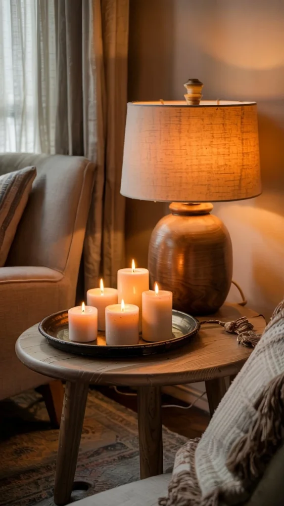 Don’t underestimate the power of candles and flameless LED options. Clustered on a wooden tray or tucked into a fireplace, they add instant warmth and that coveted hygge feeling. Opt for unscented or naturally scented options in ceramic or wooden vessels.
