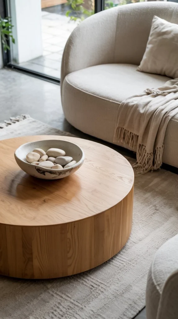 Look for pieces inspired by nature’s forms—a bowl that mimics a river stone, a mirror shaped like a pebble, cushions with gentle curves instead of rigid squares. These subtle shape choices make your living room feel more inviting and less formal.