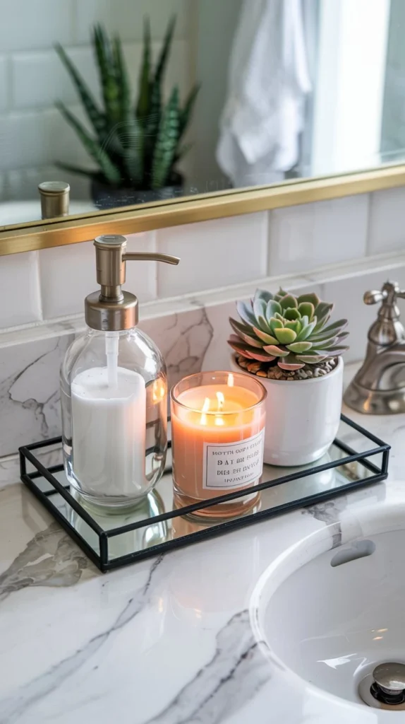 Pair a mirrored tray with your soap, candle, and a small plant for an effortlessly elevated look.