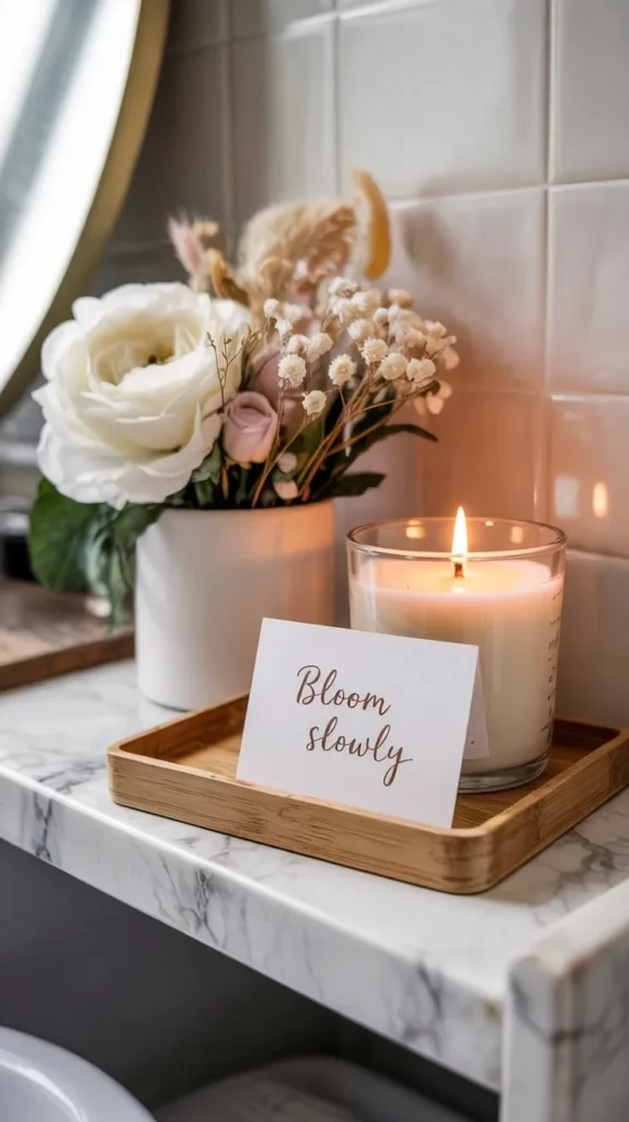 Your bathroom doesn’t need a full renovation to feel like a retreat. It just needs a little intention — a plant, a candle, a rolled towel, a bud vase with a single flower that makes you smile every morning.