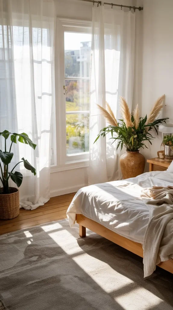 Heavy blackout curtains are a winter essential, but come spring, your bedroom deserves all the golden hour light it can get. Swapping to sheer white or linen curtains is one of the most impactful and affordable spring home decor upgrades you can make. The light that filters through sheer panels is soft, warm, and cinematic — it makes every single thing in your room look better.