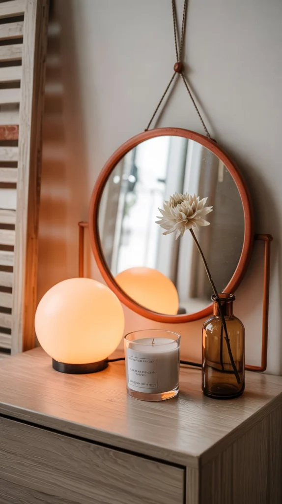 3. Bedside Table Mirror for Soft, Layered Light