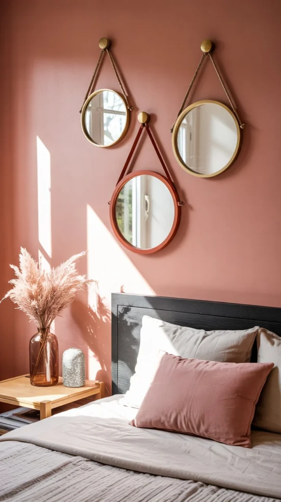 Whether you choose a single arched statement mirror leaned casually in the corner, a botanical gallery wall that mixes mirrors with your favorite art, or a simple little oval mirror on your nightstand that catches the dawn light just right – the effect is the same: a bedroom that breathes, glows, and feels entirely like yours.