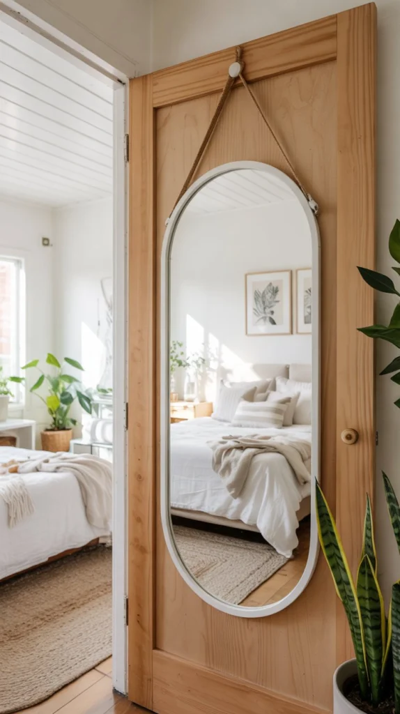 For apartment dwellers and renters with limited wall space, an over-the-door mirror is a total game changer. Modern versions are full-length, beautifully designed, and many come with hidden storage pockets on the back – perfect for jewelry, hair tools, and those things that always pile up on the dresser.