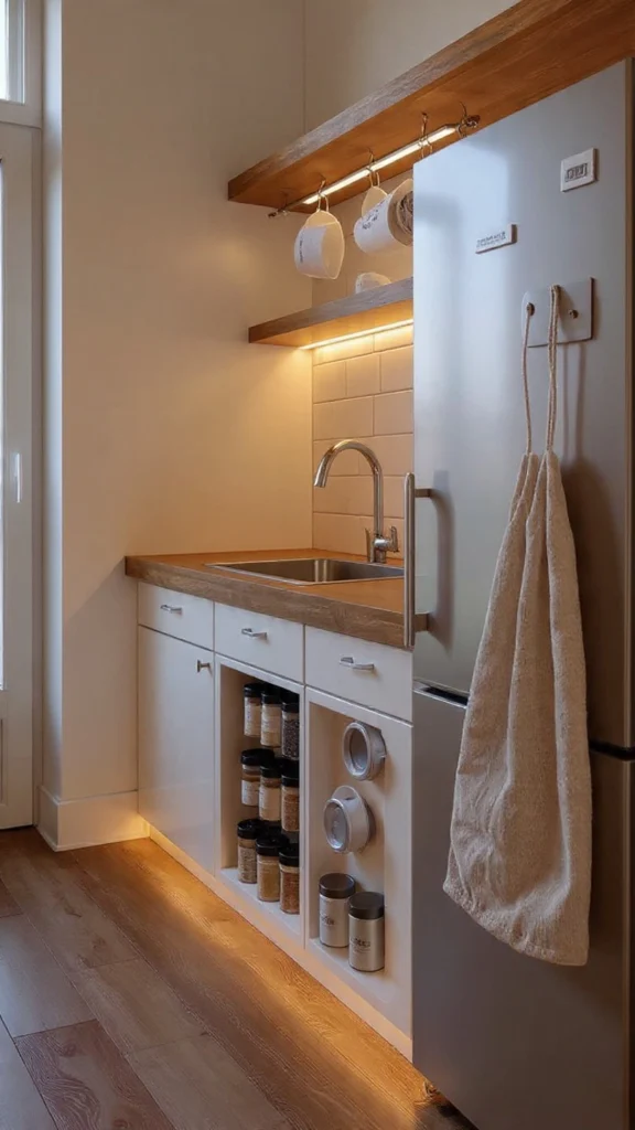 Start with the one idea that addresses your biggest frustration. Maybe you’re constantly searching for counter space—grab that rolling cart. Perhaps your utensils overflow from a single cramped drawer—install that magnetic strip this weekend. Small improvements compound quickly in tiny spaces, and even minor changes create noticeable differences in how your kitchen functions and feels.