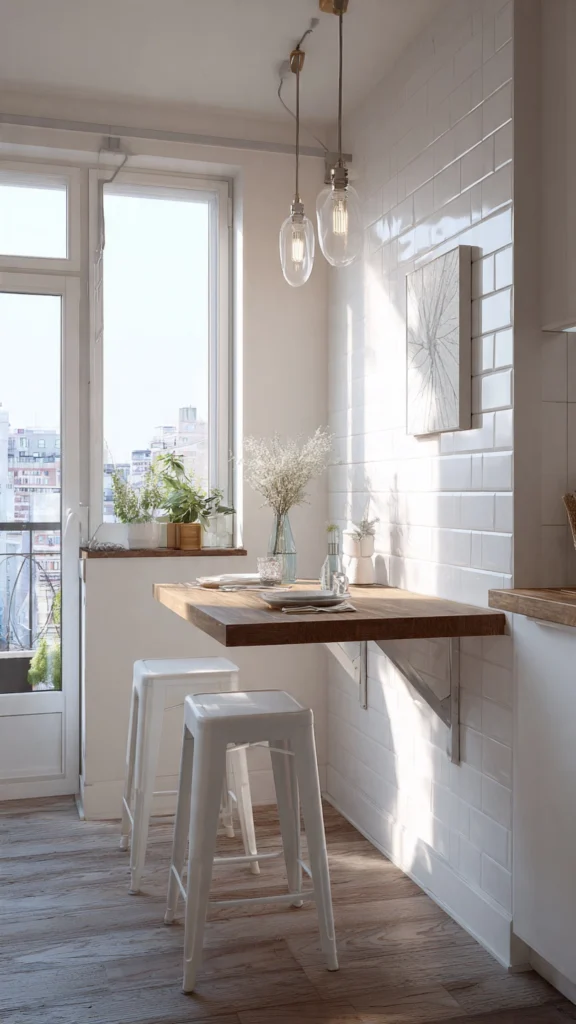 When your tiny apartment kitchen has zero room for a dining table or permanent island, a fold-down wall-mounted table saves the day. These ingenious solutions mount flat against your wall when not in use, then fold down to create instant counter, prep, or dining space exactly when you need it.