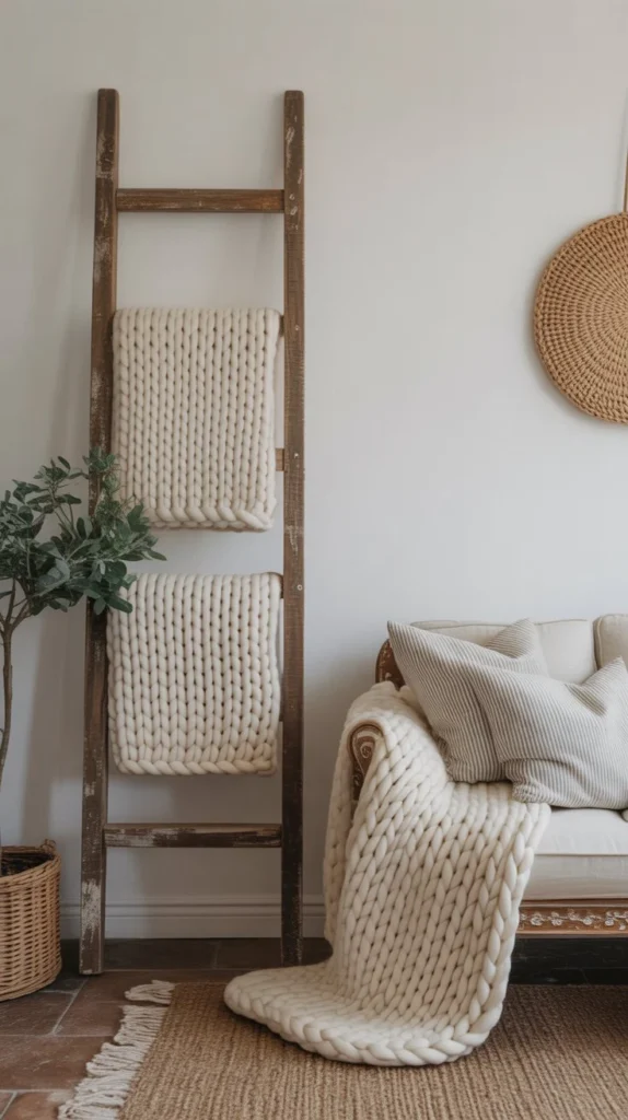 Pro tip: Store extra throws in a large woven basket beside your sofa. This keeps them accessible while adding another layer of farmhouse texture to your room. Rotate seasonal colors—warmer tones for fall and winter, lighter neutrals for spring and summer.